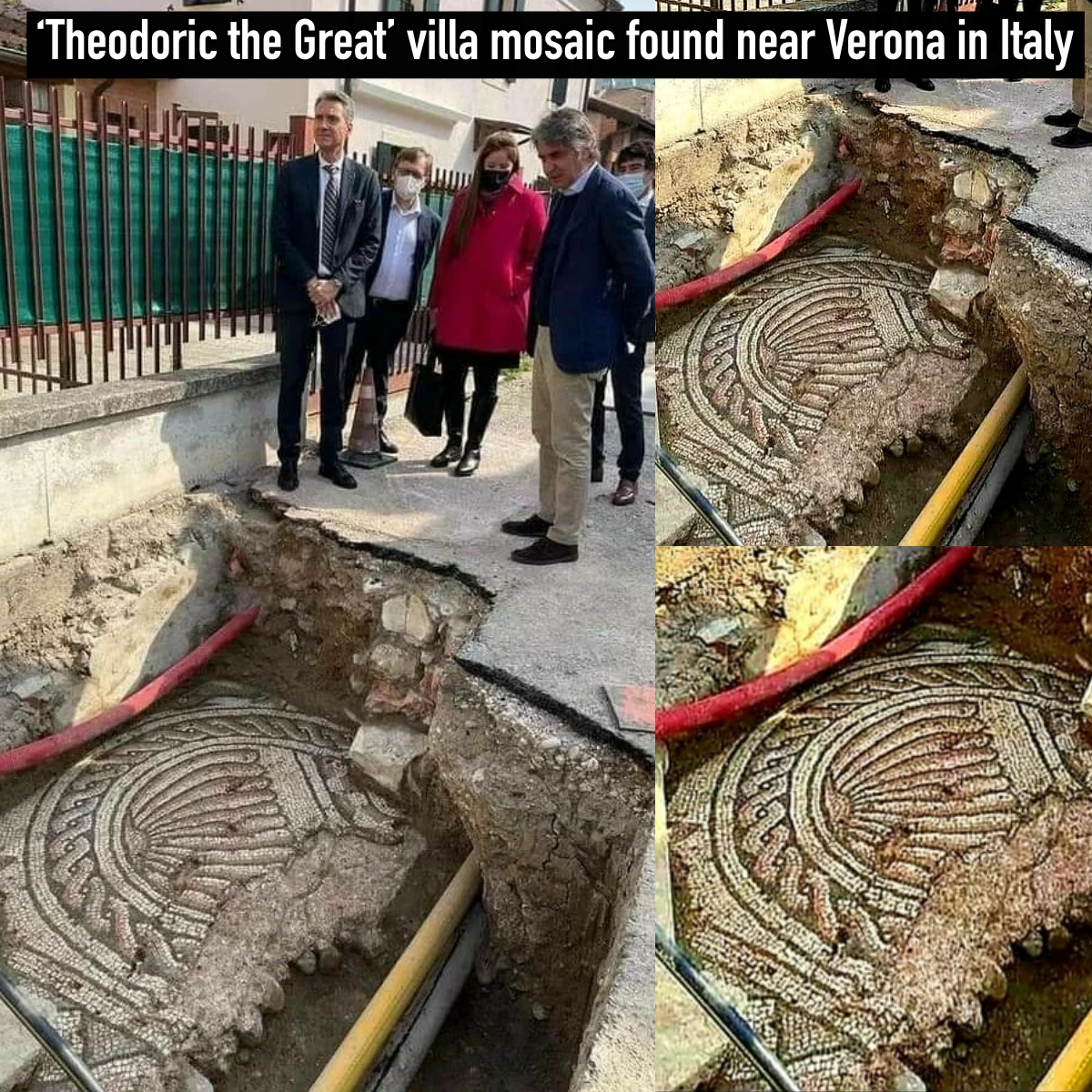 A section of the ancient Roman mosaic flooring from the 5th century AD villa of Ostrogoth king Theodoric the Great…