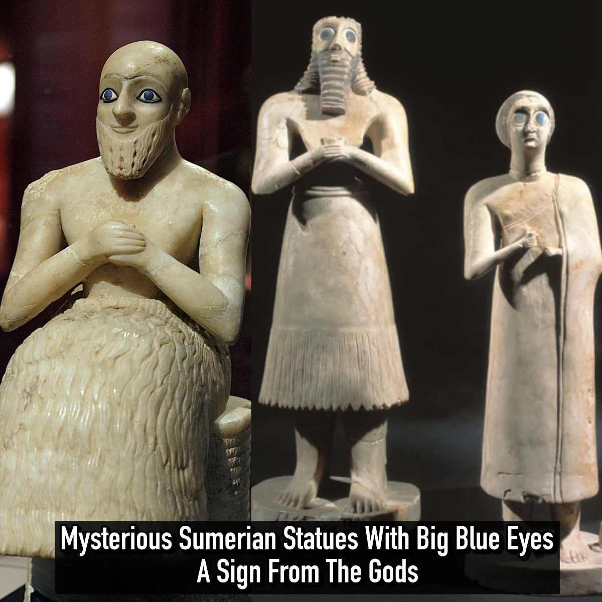 Ellen Lloyd – Ancientpages.com – Sumerians made several ancient statues of beings who had huge and blue eyes. These ancient statues were then placed in the
