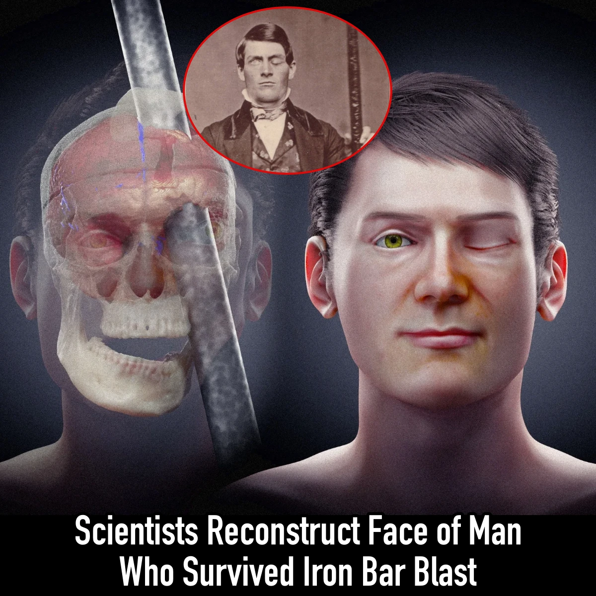 Scientists reconstruct the face of the man who survived an unfortunate iron rod incident. Credit: Cicero Moraes / CC BY 4.0 Phineas Gage, a railroad…