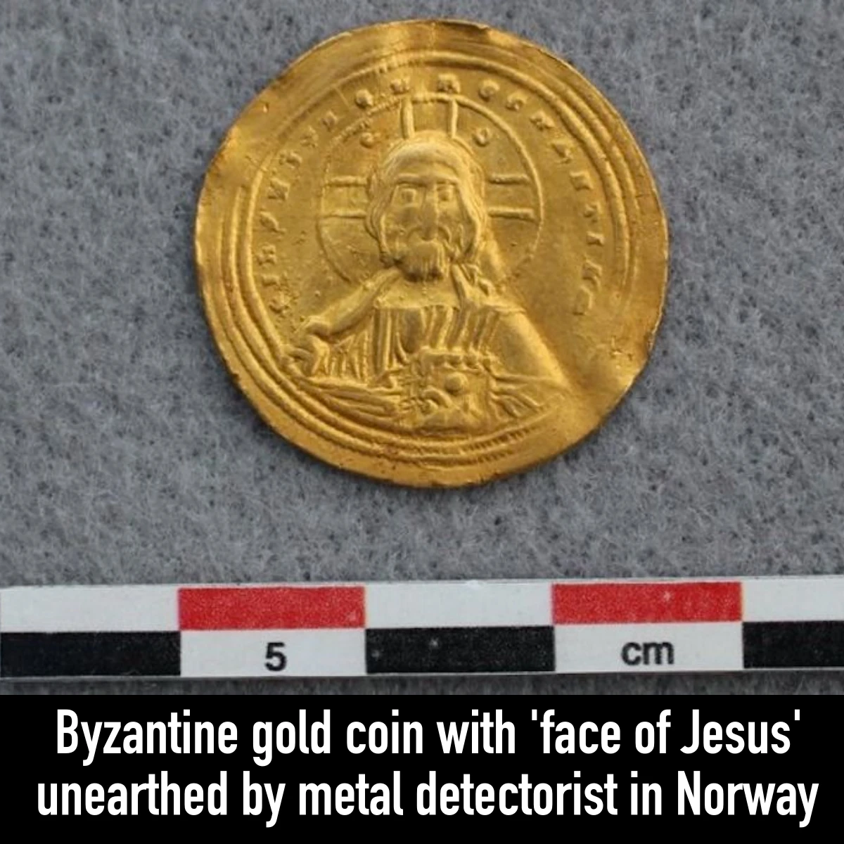 A metal detectorist stumbled upon a rare gold coin while exploring the mountains in southern Norway. Jesus Christ can be seen depicted on one side…