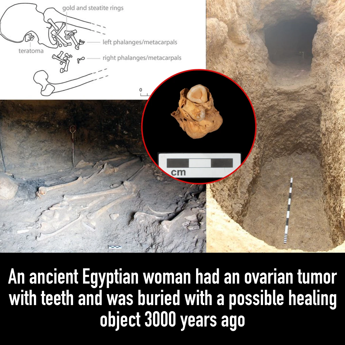 An ancient Egyptian woman had an ovarian tumor with teeth and was buried with a possible healing object. Teratoma with Tooth A (lower) in situ…