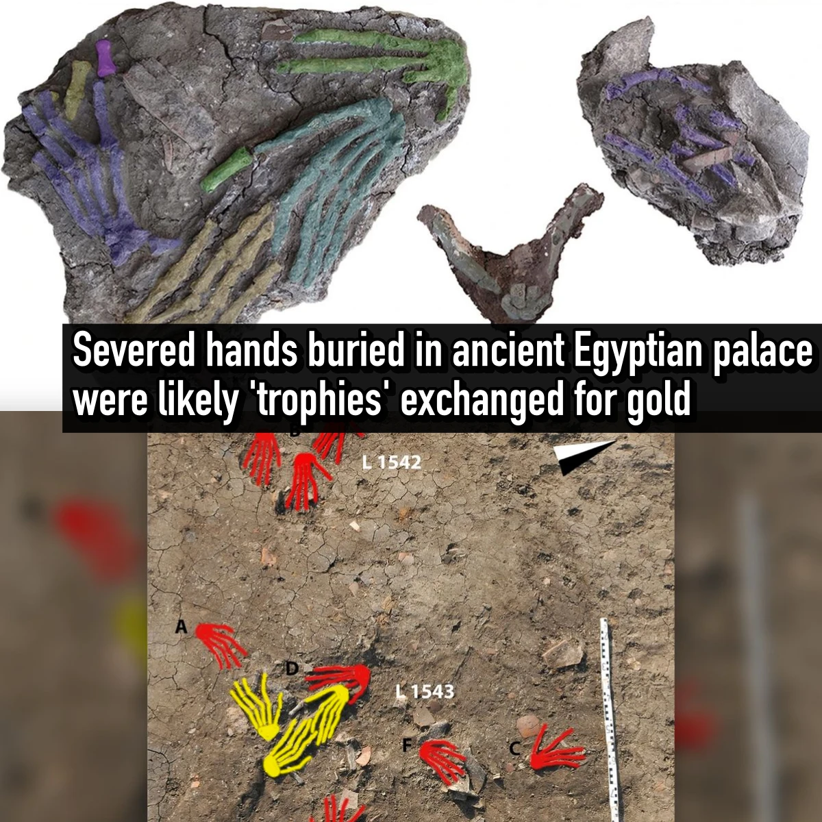 Twelve severed hands found buried at an ancient Egyptian palace were likely cut from enemies and exchanged for gold in a ceremony known as “gold…