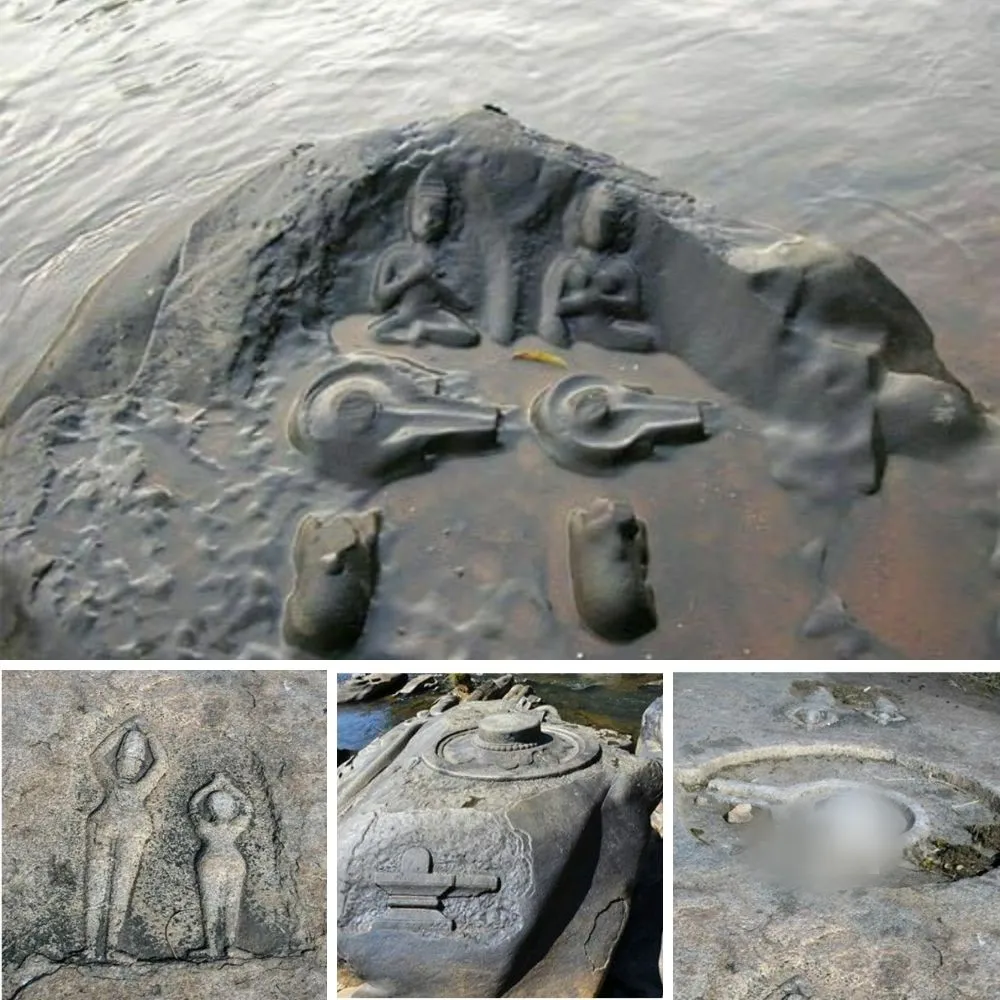 There is a place in the district of Uttara Kannada of Karnataka state in India, where hundreds of shrines of the Hindu god Shiva are carved in the exposed rocks of the Shalmala riverbed and on its banks. The site is called Sahasralinga, literally, “a thousand lingas”, and is located in the middle of a forest in the Western Ghats. The nearest town is Sirsi Taluk, around 17 km away. The best time to visit the place is when the water level in the river is low, and most of the shrines are visible along with their bases called “yonis”. Originally, every linga had a carved figure of the holy bull called Nandi facing it, but many of these have been damaged and some are missing. On the auspicious occasion of Maha Shivaratri, a Hindu festival, thousands of pilgrims throng to this place to worship Lord Shiva.