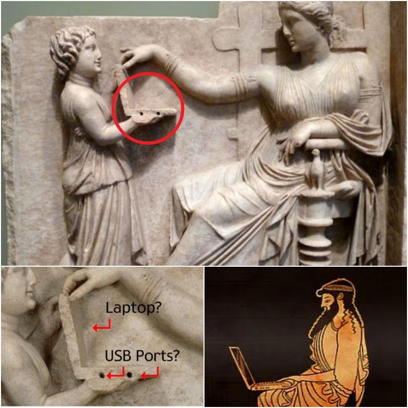 Como se puede ver por el título mismo, lo que parece ser una computadora portátil moderna ha sido detectada en esta talla de una joven que parece Grecia.