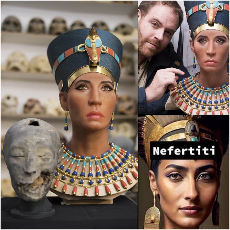 El rostro de la reina Nefertiti, que pudo haber sido la madre biológica del rey Tutankamón, será revelado en Expedition Unknown del Travel Channel, que se transmite el miércoles por la noche. El rostro es el resultado de la última tecnología de imágenes tridimensionales que utilizó la estructura facial de la momia para darle vida a la reina de 3.400 años de antigüedad, pero es el color de la piel de la escultura, no los pómulos, lo que ha generado la mayor controversia.