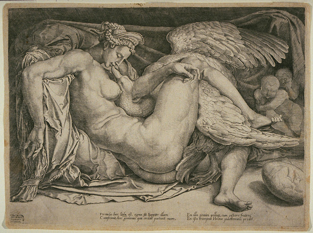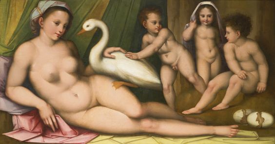 44 Works, Leda and the Swan, art from a Greek myth, with footnotes. A subject that has been a favourite with artists throughout the centuries.